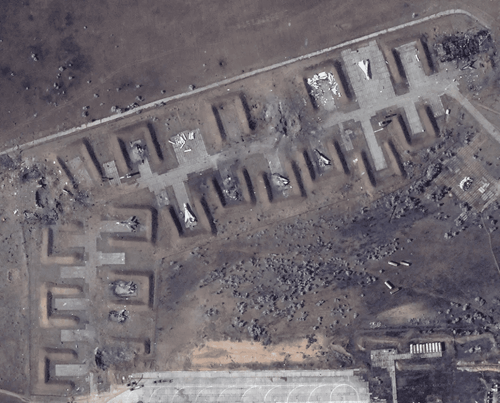 至少三个苏30侧和3架苏- 24击剑和另一个架苏- 24和相邻结构,还有一个额外的独立结构,同样在这个部分的基础出现破坏。架苏- 24五分之一似乎受损。
