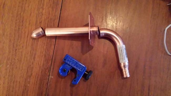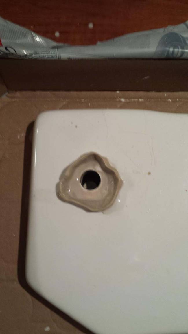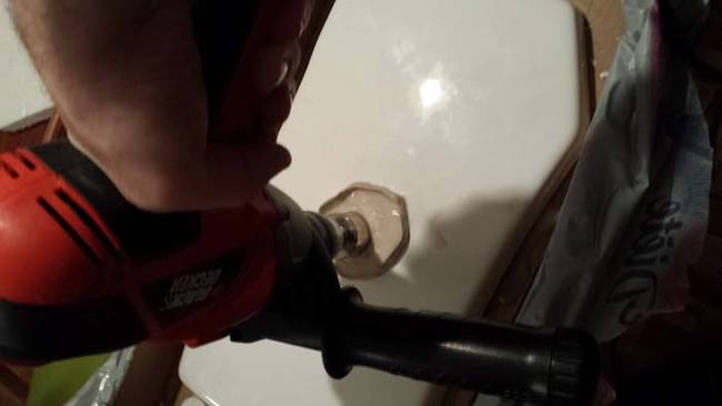 在厕所罐盖上钻了两个孔。一个洞是用于喷口的洞,一个用于水槽。