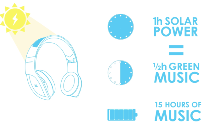 Helios耳机利用已嵌入头带的光伏面板,这使耳机可以收集太阳的功率。这些耳机背后的团队说,每小时暴露于阳光下,耳机将能够允许使用半小时。但是,在雨天或时间,阳光太低了,在这种时候,也将430mAh电池纳入了混合物中。可以通过使用Micro USB电缆和交流电源充电来充电电池。它可以完全充电15小时。