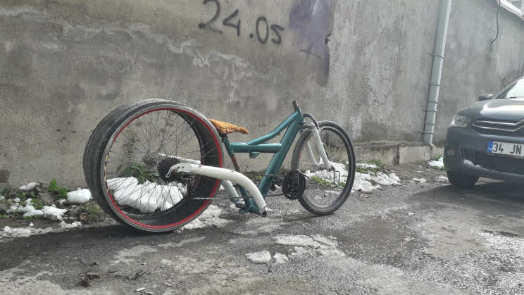 第二步是拓宽自行车车架的后部,以适应新的汽车轮胎。Mücahit说,焊接不是问题,因为他们的一个叔叔有自己的商店,并帮助他们使用工具。