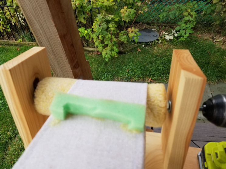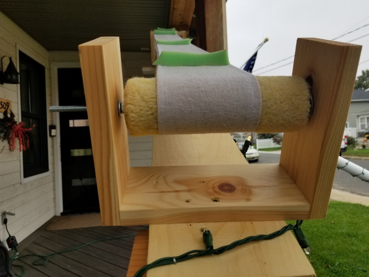 在邮件中,他写道,他切断了塑料手柄,然后试图在金属滚筒上敲击线程,但失败了。然后,他想到了卸下整个手柄,并使用带有12英寸螺纹杆的滚筒笼。