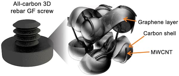 这钢筋石墨烯可以模制为任何必需的形式。但是,第一个形状像螺钉一样。该团队用锂离子电容器使用它,因为它以多孔形式高度导电。该实验有助于证明其机械和化学稳定性。