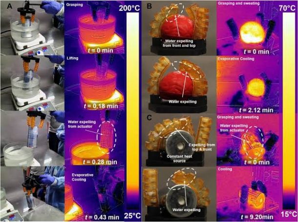 一项类似的研究导致了这些机器人手指的发展,这些手指可以通过出汗而冷却。因此,增加了机器人的生活。这项研究是在康奈尔大学进行的,而主要的研究员是机械和航空工程副教授Rob Shepherd。他与他的团队一起设计和制造了机器人的肌肉,可以类似于人的手指出汗。出汗后,机械通过调节温度来冷却。