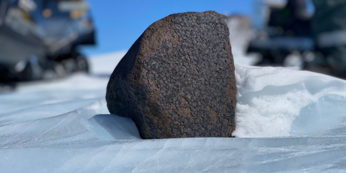 研究人员做了一个世外桃源的启示在南极洲的冷冻景观时,他们发现了一个17-pound陨石含有一些太阳系早期的组件在大雪中休息。