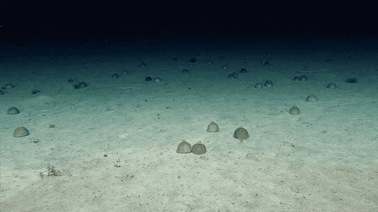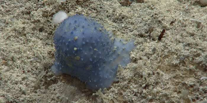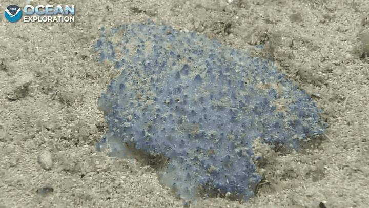 在加勒比海海底工作的科学家们发现了大量的“蓝色粘稠物”生物,它们似乎静止地躺在海底。目前还不清楚这些是哪种生物。它们在外观上是凹凸不平的球状斑点。