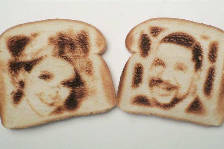 这种新颖的烤面包机基本上将允许用户在一块面包上燃烧自己的图像。想象一下,用室友的傻笑在其中吃面包片。该产品的价格为75美元,并通过将面包轻轻烧烤到金棕色,同时通过将图像燃烧得更暗,以勾勒出图像。