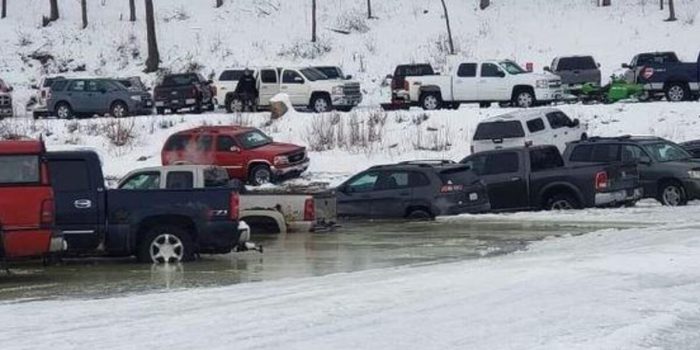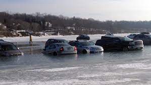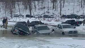 “我大概在四分之一英里外,那里有12英寸的冰,”冰上渔民布洛克·史密斯周日说。史密斯说,周六停车场已经满了,所以司机们开始把车停在湖边。他远远地看着六辆车掉入冰层,不得不收起来。