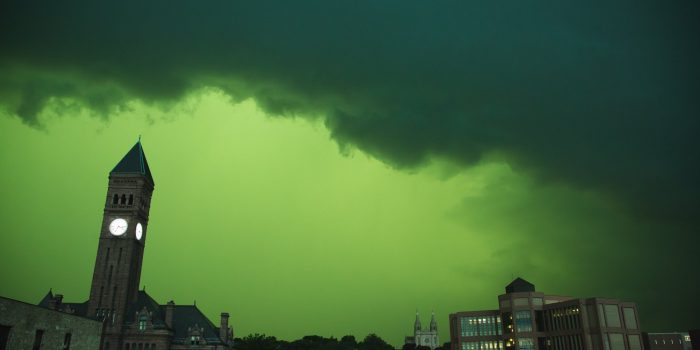 在暴风雨中,在暴风雨中,之后和之后,数百人去了社交媒体,以反思风暴袭来时的天空看起来多么奇怪。其中包括数十个经验丰富的风暴追逐者,其中许多以前从未见过这种颜色。