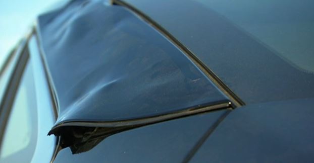 是的去把太阳晒黑的一辆汽车…只是揭掉顶部几层的皮肤和胶水。