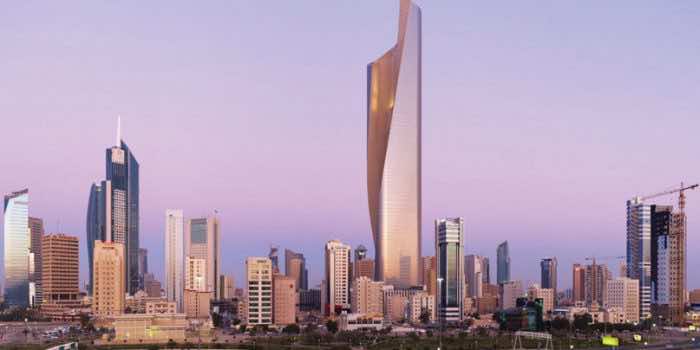 Al Hamra塔是位于科威特科威特市的414米(1,358英尺)高的Supertall摩天大楼。目前在2011年完成,目前是科威特最高的建筑物,36号建筑物Th世界上最高。这座80层的办公大楼也是世界上最高的建筑,拥有连续的石立面。