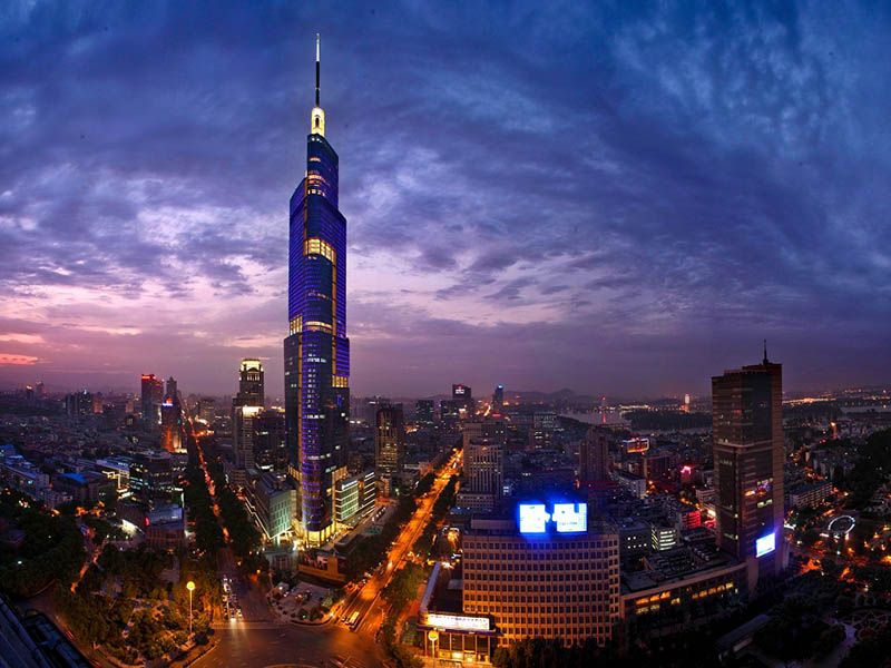 紫丰大厦,原名南京绿地金融中心,是位于中国江苏省南京市的一座450米(1480英尺)的超高层摩天大楼。该建筑目前是南京和江苏省最高的建筑,在中国排名第11位,在世界排名第20位。这座89层的塔楼于2010年开放,是一座混合用途的建筑,包括41层的零售和办公空间。49-71层设有酒店,众多的餐厅,和72层的公共天文台。