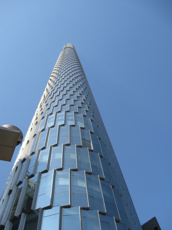 该中心由办公空间、拥有500间客房的洲际酒店、零售空间和低于标准的停车场组成。塔楼的顶部有几家餐厅和一个公共观景台。景观透明的玻璃中庭遍布整个建筑,室外游泳池和花园位于塔平台的屋顶上。在夜间,塔尖被点亮,因此成为这座城市的现代地标。