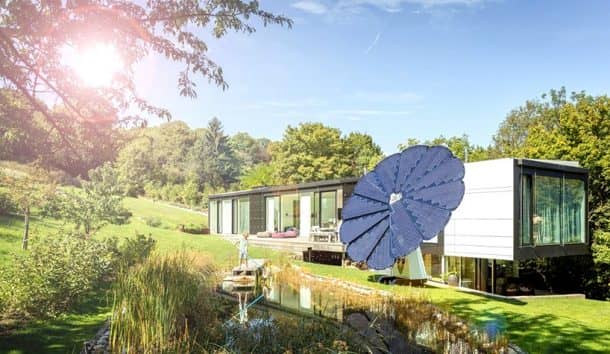 除了更美观、更容易安装之外,Smartflower POP声称,它每平方米的发电量比屋顶太阳能系统多40%,因为它绕着轴旋转,以确保它总是正对着太阳,就像向日葵一样。