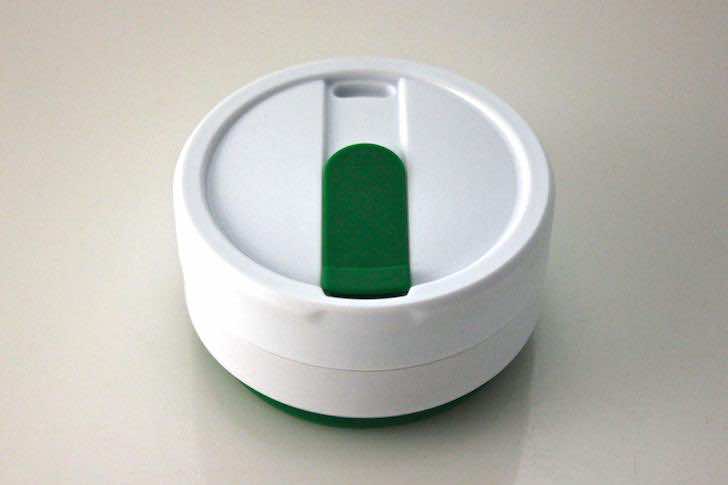 Smash Cup带有一个紧密的密封,可以通过四分之一的回合激活。它是由3份硅胶和一部分塑料制成的。本声称清洁杯子很容易,而且洗碗机也很安全。该产品有5种不同的颜色;红色,绿色,蓝色,粉红色和橙色,而塑料盖有白色或深灰色。