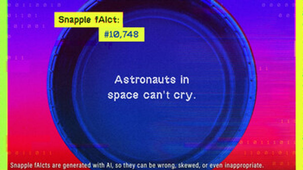 Snapple的努力的焦点生成人工智能是一个公司的多个知名的营销策略。已经有1677年的事实出现在斯奈普帽自推出“斯奈普真正的事实。”