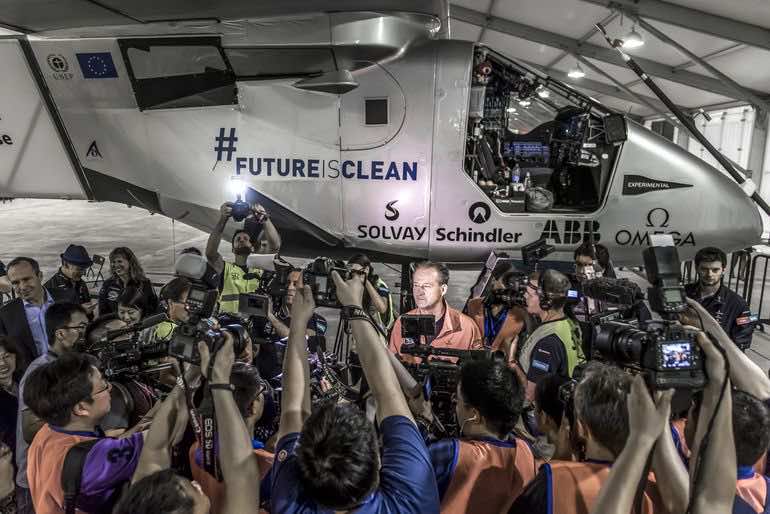 脉冲太阳能飞机的使命是环游世界,纯太阳能。其瑞士飞行员正面临有史以来最大的挑战不仅对太阳能飞机还任何类型的飞机,因为他开始一个历史性的130小时飞行从南京,美国夏威夷中国。