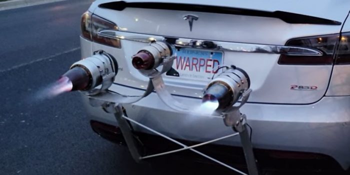 他第一次测试驾驶车辆的引擎,和两个活跃,特斯拉型号S P85保持60英里每小时(96公里/小时)在高速公路上。之后,他看到他们有多少的影响电动车的直线加速度。因此,他独自运行在电力和所有三个发动机最大推力——和他的结论是有趣的,但并不令人感到意外。