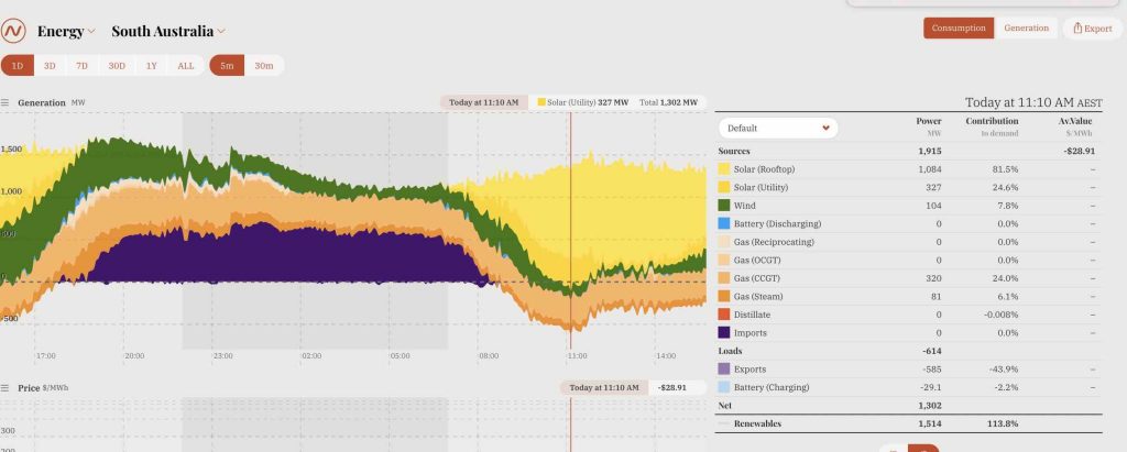 毫无疑问,太阳能份额为88.7%。此外,根据澳大利亚能源市场运营商的说法,屋顶太阳能可以满足今年春季100%的州需求(当温度仍然处于中等状态并最少使用空调时),建立了另一个记录。