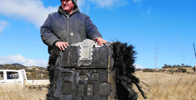塔克在推特上的消息,随着太空碎片的照片,说:“我刚从Dalgety回来,新南威尔士州。我很关心建立碎片的SpaceX船员1乘员舱已经撞到几个牧场在农村新南威尔士!”