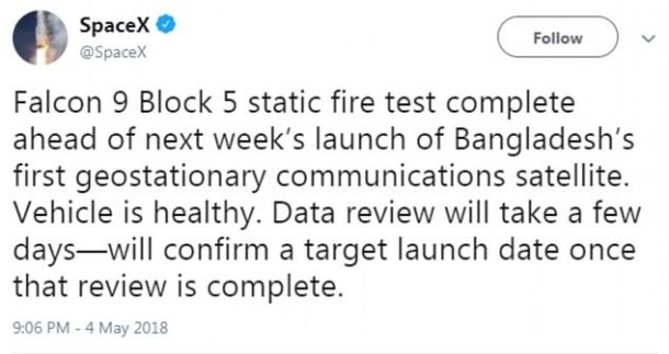 Block 5将从美国宇航局肯尼迪航天中心的39A发射台起飞。猎鹰9号的顶部是孟加拉国1号通信卫星,这是一颗孟加拉国通信卫星。Bangabandhu 1号将向农村地区提供广播和电信服务,并在孟加拉国全境提供直接到家的电视服务。如果一切按计划进行,这将是SpaceX执行载人任务的原始计划的绿色信号,该计划使用在单一寿命内可重复使用多达100次的火箭。