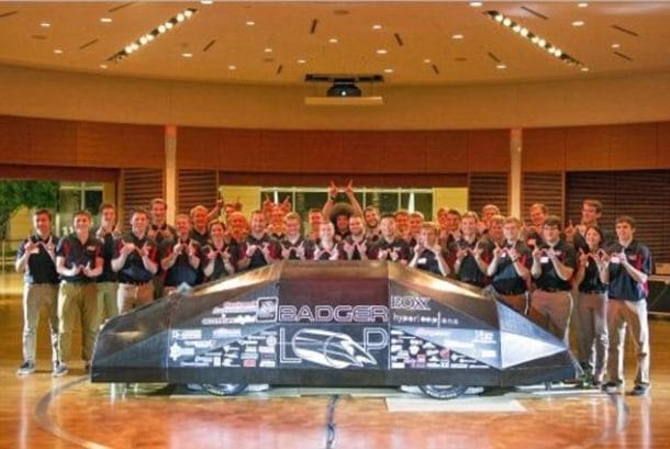 威斯康星大学麦迪逊分校的学生因其创新设计而获得了15英尺长的2,100磅重的吊舱,称为“ Badgerloop”,这也带有虚拟现实设置。