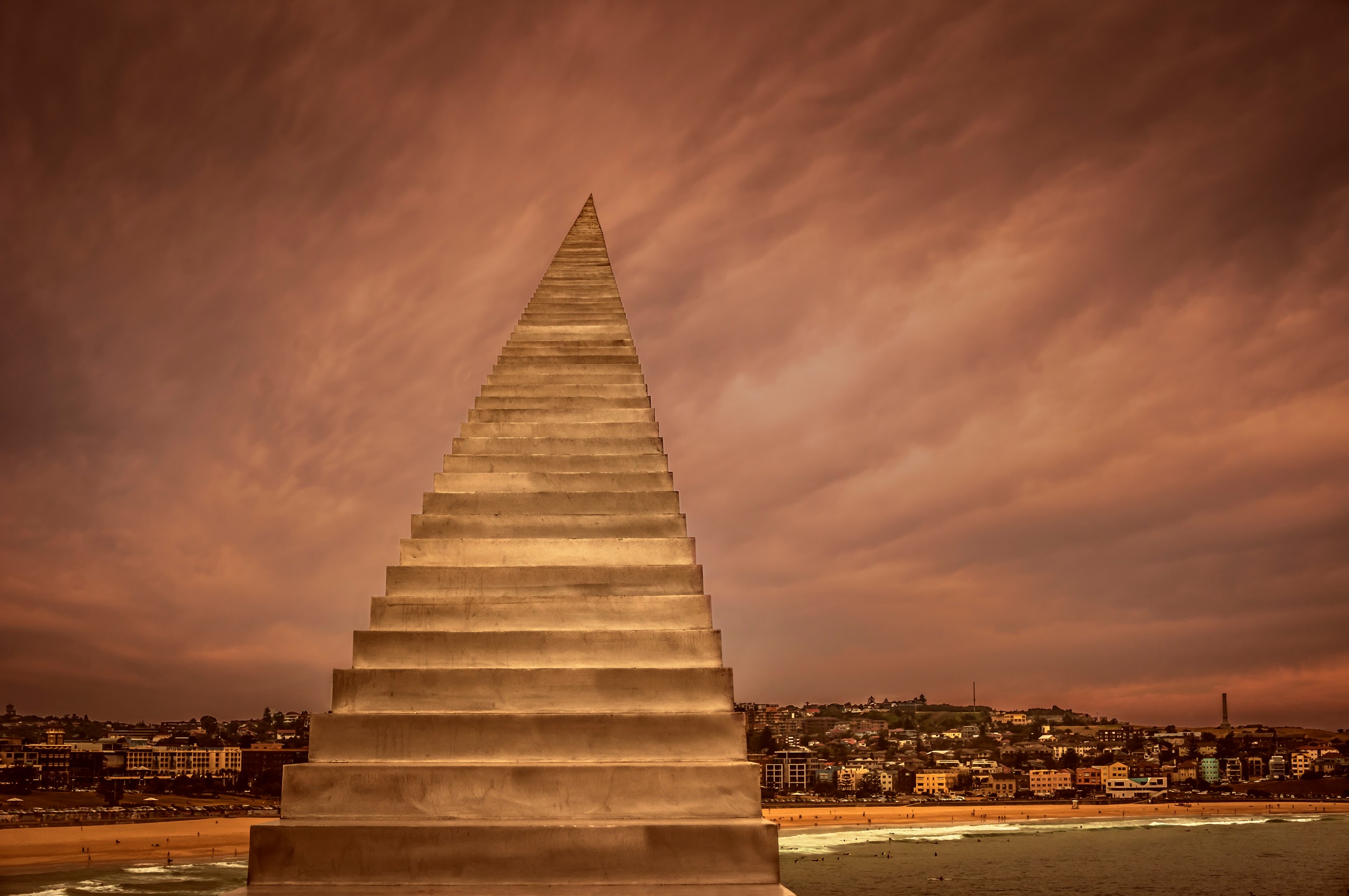 这个雕塑是由David McCracken创作的,基本上是由焊接在一起的铝制楼梯组成。这种特殊的组合形成了一个指向天空的楼梯,这取决于你看天空的角度和云层的条件。爬上去似乎很难,更不用说了;看起来也很危险。