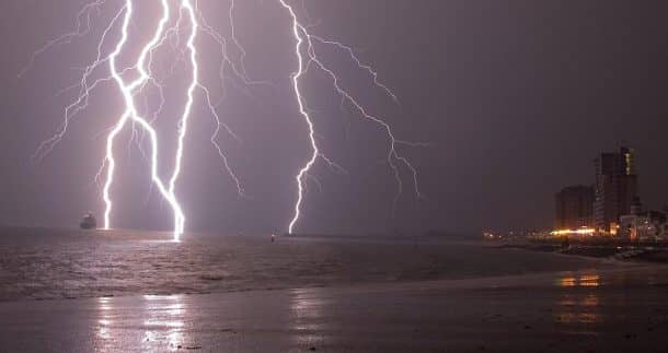 唯一剩下的案例研究是闪电击中潜艇的案例。这种类比仍然适用于潜艇要么沉没要么漂浮的情况。关于闪电和水的一个有趣的事实是,大部分的放电不会穿透水体的表面。它倾向于水平而不是垂直地扩散。闪电击中陆地的几率比击中水面的几率大。游得更深一点是应对这种情况的好办法。潜艇上的人比陆地上的人安全。