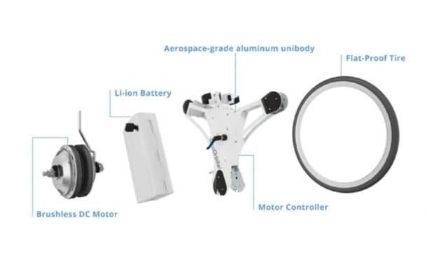 车轮是一个耐用的防爆轮胎,由无刷直流电动机、铝电机控制器和锂离子电池组成。电池不需要插电。相反,当自行车不使用电池时,它们会自动充电,例如在下坡、踩踏板或减速停车时。安装不需要工具,这意味着它可以在一分钟内完成。