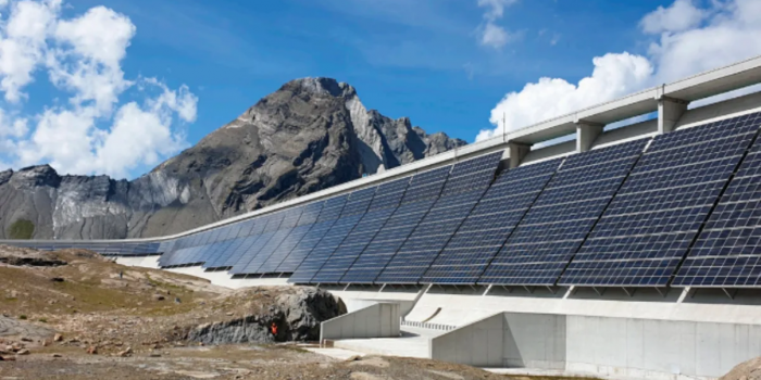 2.2兆瓦太阳能项目与水电站大坝的墙。AlpinSolar将产生足够的电力约700家庭。