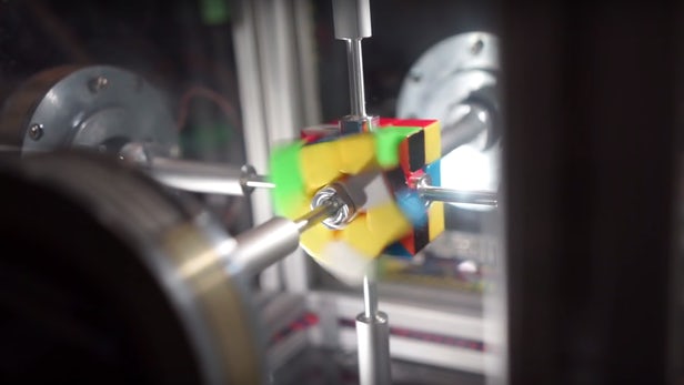 看这个机器人打破一项世界纪录,解决这个魔方在0.38秒