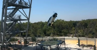 观看汽车拍摄世界上最强的蹦床
