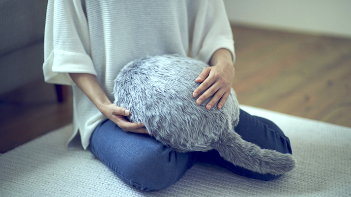 Qoobo的设计看起来更像是一只猫,但是Yukai Engineering首席执行官Shunsuke Aoki说,尾巴的运动行为是在对猫和狗的广泛研究之后设计的。