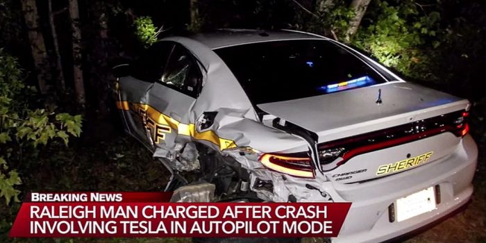 根据夏洛特观察家的说法,当一个男人在特斯拉(Tesla)看电影以自主模式在北卡罗来纳州路上旅行并撞上警车时,发生了一场令人震惊的意外事件。