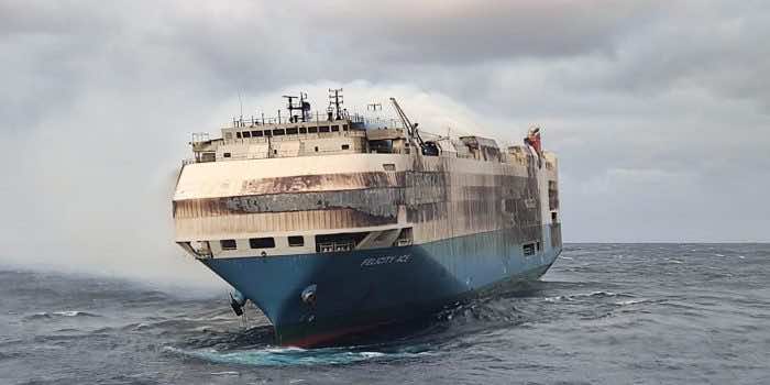 上周三,650英尺长的“费利西蒂·艾斯”号从德国驶往美国的途中在大西洋中部起火。