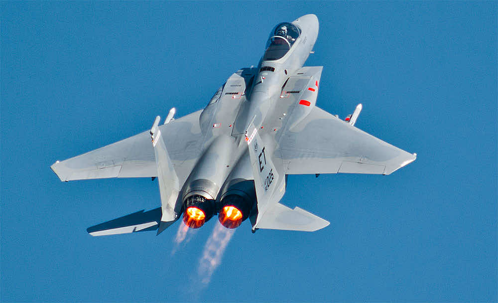 F-15是一种高性能的全天候空中优势战斗机,以其令人难以置信的加速和机动性而闻名。它的最高速度超过了2.5马赫(超过1600英里/小时或2575公里/小时),是美国第一架有足够推力垂直加速的战斗机。F-15携带大量导弹,包括AIM-9“响尾蛇”和AIM-7“麻雀”;波音公司制造的小直径炸弹I、联合直接攻击弹药(JDAM)和激光JDAM武器;内置20毫米加特林炮,这些都是现代交战的关键。