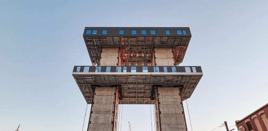 Liftbuild建设系统是一个hyper-modular版本的“电梯板”技术,其根源在1950年代早期。不过,它的工作原理是这样的:
