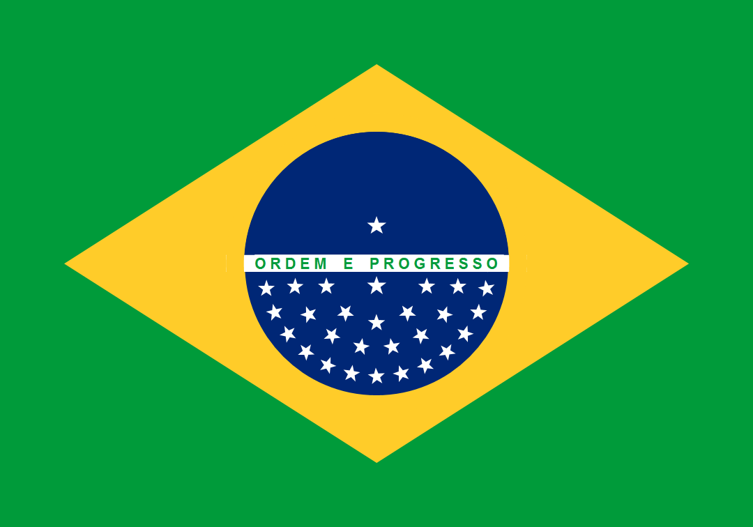 巴西的国旗是蓝色的星空磁盘说明的由弯曲张成戒指上面刻着国家的口号,在一个金色的平行四边形,绿色区域。巴西19日正式实现这个设计为国旗th1889年11月,改变巴西的国的国旗。表达的想法是,最终确定Raimundo特谢拉门德斯,合作的曼努埃尔•佩雷拉Reis Decio维拉和米格尔Lemos。