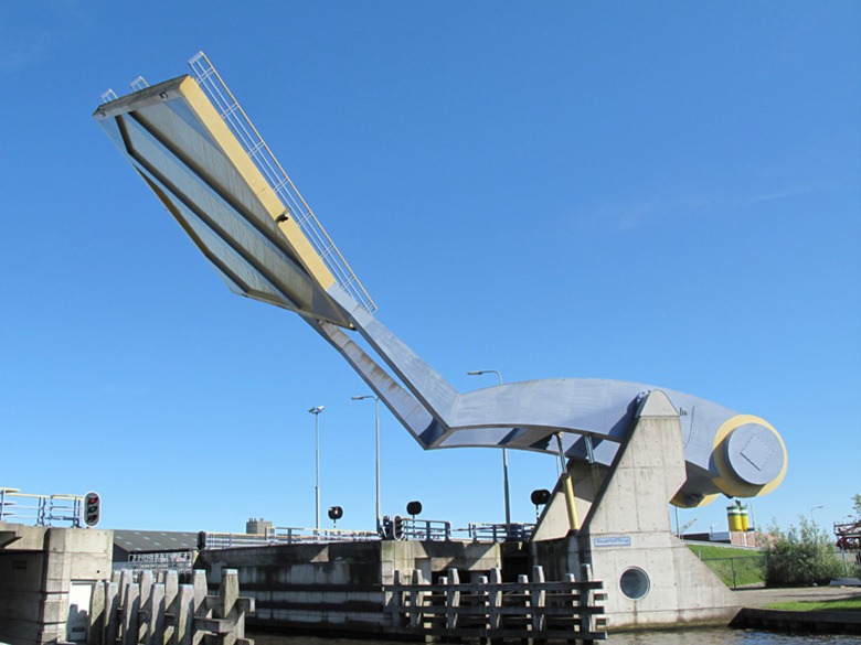 该桥被称为“飞桥”,位于Leeuwarden市。这座全自动的宽桥也被称为“尾桥”,而实际名称为Slauerhoffbrug。