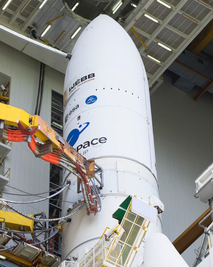 JWST终于为其大型活动设定,将其固定在其发射车上。NASA,欧洲航天局和加拿大航天局在太空望远镜上合作。