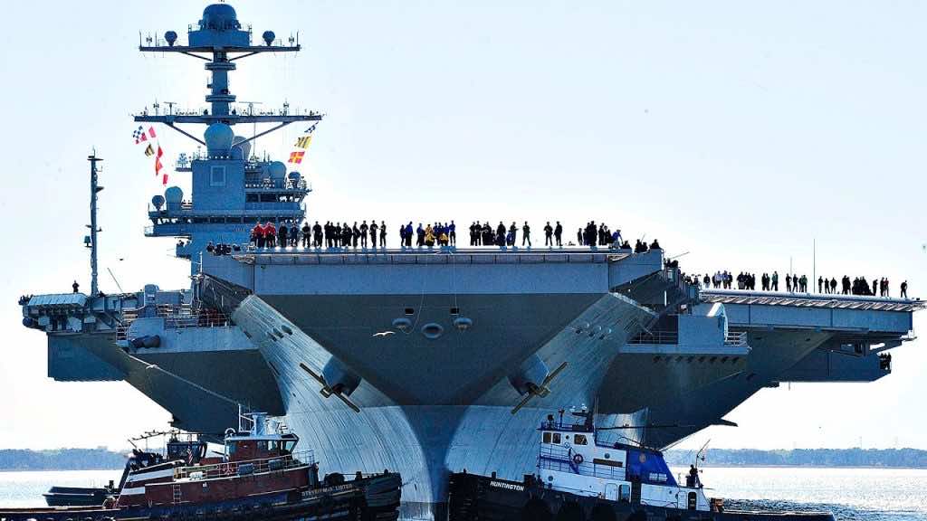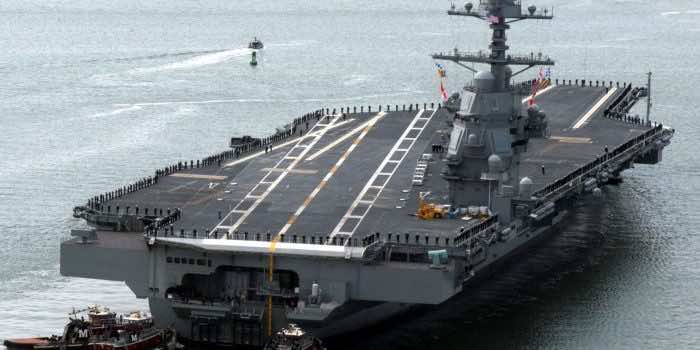 施工于2005年8月11日开始,当时诺斯罗普·格鲁曼(Northrop Grumman)举行了15吨板的礼仪钢切割,该盘子构成了载体的侧壳单元的一部分。杰拉尔德·R·福特(Gerald R.