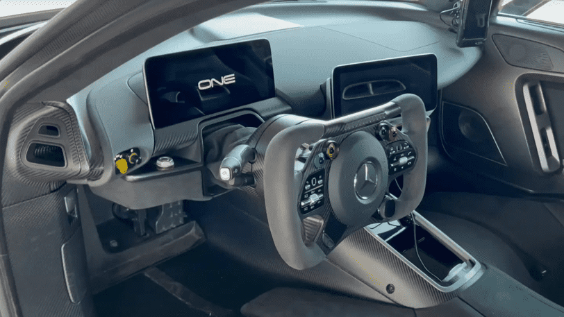 的airbag-equipped F1-style方向盘功能转变的灯光和旋转控制驾驶模式,牵引力控制系统和尾翼,踏板框也是可调的。指示板有两个矩形数字显示,一个领先指标的司机,另一个在汽车数据和信息娱乐中心的功能。