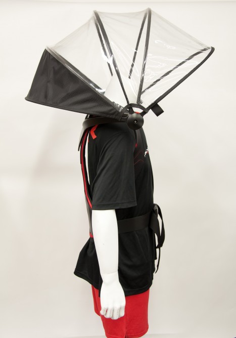 偏转器已被固定在背包 - 阿肯线束上,上面有一条腰带和皮带。该公司还计划引入具有可拆卸背包的版本。偏转器通过按下按钮在脖子后面塌陷。这种重新设计的模型还能够以高速生存。据报道,该公司指出,它可以生存到最高时速40英里。该公司推测,这对建筑人员,轮椅用户,摄影师和任何户外运动的狂热者都将很有用。雨伞重1.1公斤。截至目前,它正在通过Indiegogo活动筹集资金,承诺从49美元起。雨伞将于2015年4月在全球范围内运送。