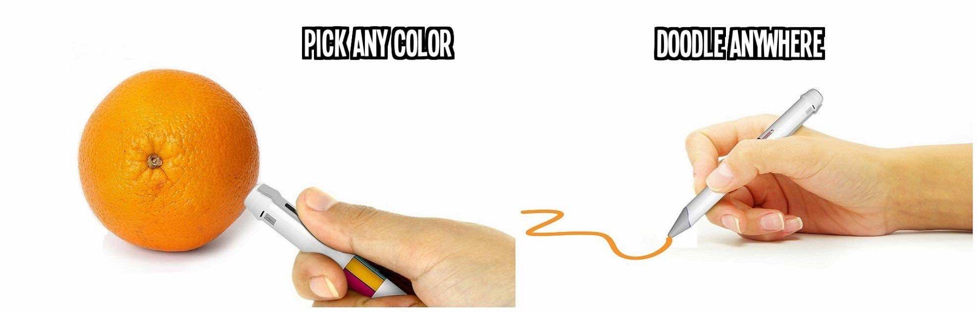 涂鸦笔将允许用户用1600万颜色绘制,这转化为您可以以这种小工具形式访问所需的所有颜色。笔将使您可以从周围的任何东西中“挑选”颜色,然后允许您使用最近获得的颜色在纸上或智能手机上绘制。