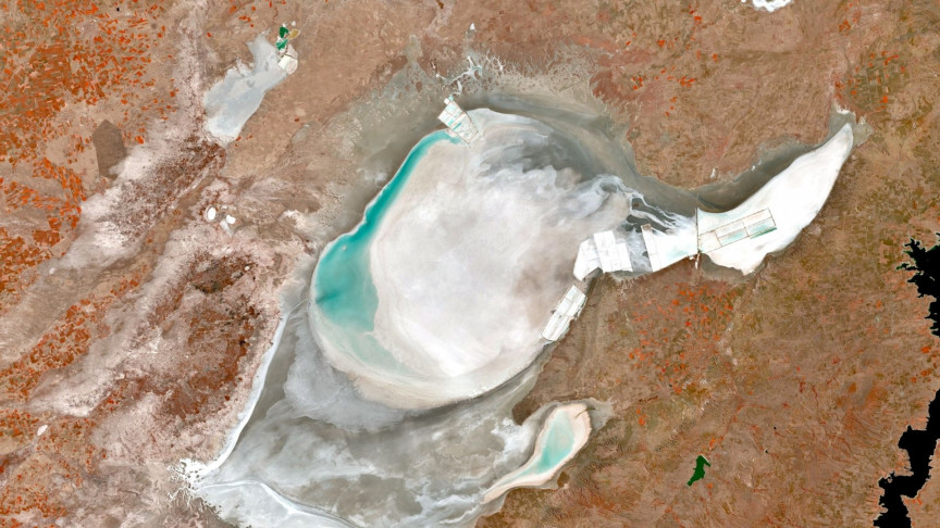 根据欧洲航天局Sentinel-2卫星拍摄的最新卫星图像,土耳其第二大湖泊图兹湖正在完全干涸。