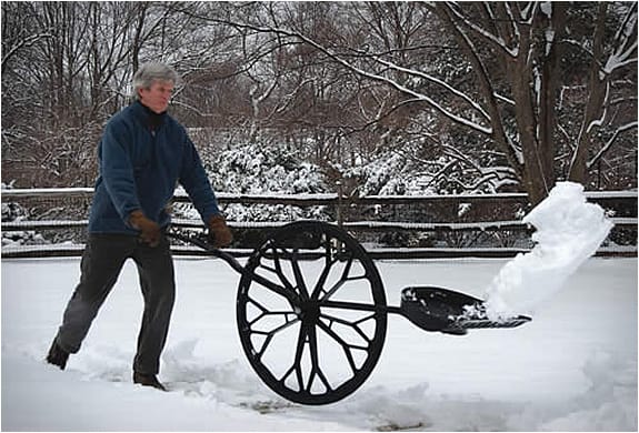 一个叫做雪狼的小玩意是为了减少对生命和四肢的伤害。该产品本质上是一个轮式雪铲,有一个长柄和杠杆状的铲子,连接着一个易于移动的轮子,工作起来很像割草机。它不需要来回扔铲子的繁重任务。
