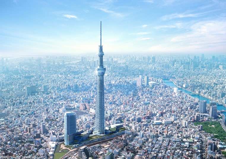 东京Skytree是位于东京的634米高的通信塔,目前是世界上最高的塔楼,也是仅次于Burj Khalifa的世界第二高的结构。Skytree于2012年2月29日在Leap Day完成,该塔在2012年5月22日向公众开放。它已成为Sumida Ward Tokyo Skytree Town的日本首都和核心的象征。