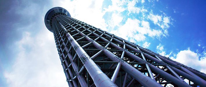 它的基地是一个大型购物中心,设有水族馆,塔中有餐馆和观察甲板,以及所有为地面电视和广播服务提供的工程功能。该结构的规划始于2005年2月,当时Tobu Railway Corporation表示渴望建造一座可以提供广播服务并容纳Sumida-Ward的行政当局的塔楼。在该项目的开头,客户要求设计师创建“超越时间和空间的新景观”。设计中考虑的三个主要目标是将未来派设计与传统的日本敏感性合并,成为振兴城市的催化剂,并在地震问题上保持安全安全。