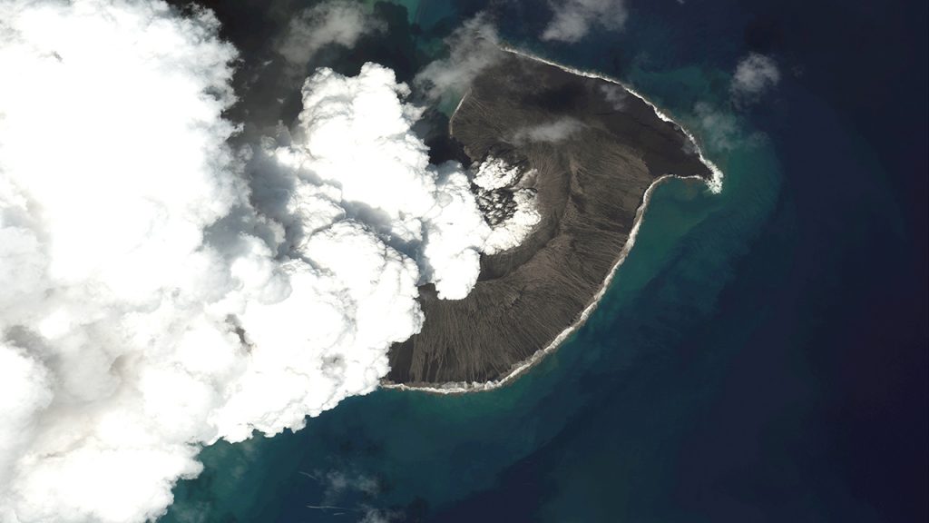 匈牙利·汤加·汉加·哈阿帕火山爆发了爆发,向新西兰和阿拉斯加发出冲击波。它还在天空中造成了巨大的蘑菇云,并在整个太平洋地区散发了海啸。