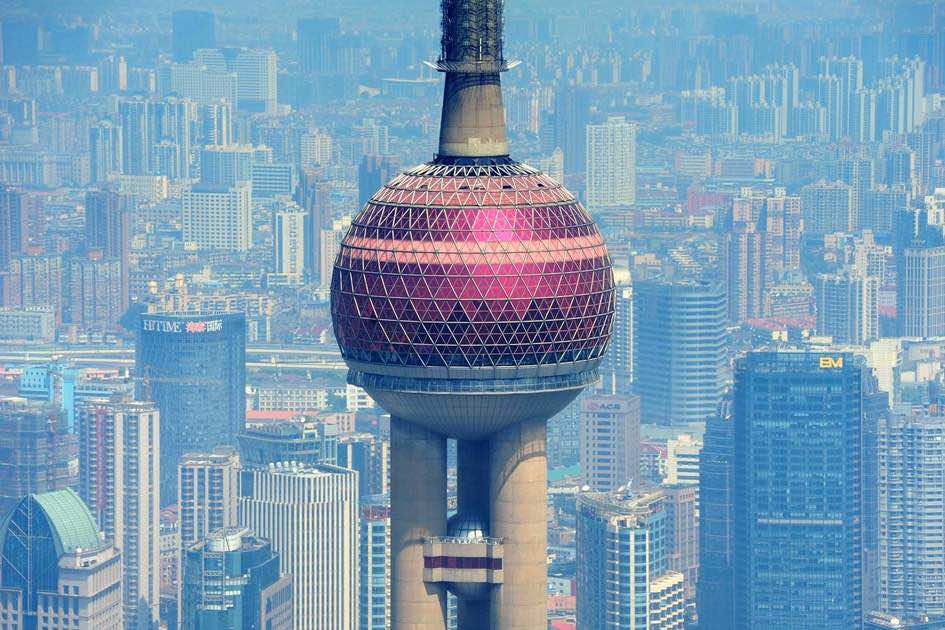 该设计由11个不同大小的区域或“珍珠”组成。最高的地方是一个直径14米的观景台,叫做“太空舱”,位于350米的地方,在那里你可以看到城市的美景,尤其是外滩。第二个区域直径45米,包含一个263米高的旋转餐厅,每小时旋转一个完整的旋转,加上第二个视点称为房子宽屏(观光层),259米。它们遵循一系列较小的区域,形成了酒店空间(Space Hotel)的房间。最大的区域(直径50米)是位于90米的第三天文台,被命名为“太空城市”(Space City),容纳未来城市。一根传输电视和无线电信号的天线从塔顶的这些空间升起,高118多米。在塔的最底部是城市历史博物馆,它与城市在街道层面上相互作用。