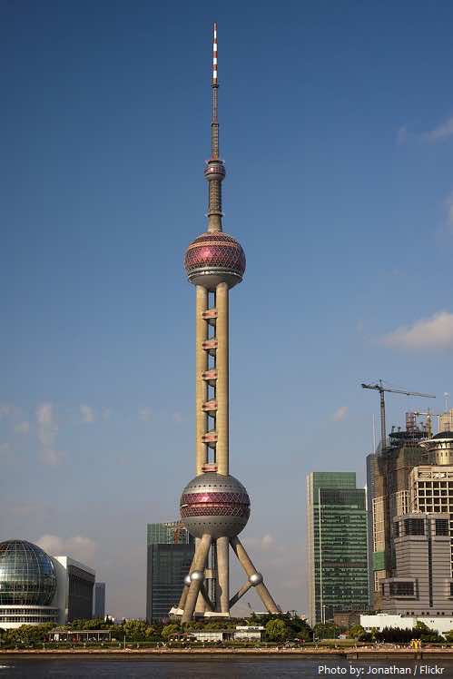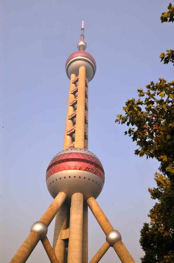 东方明珠广播电视塔是位于中国上海的一座通信和观测塔。它位于浦东新区陆家嘴的顶端,黄浦江之滨,与外滩相对,是该地区的一个主要地标。它的主要设计师是蒋欢陈、林本林和张秀林。1991年开始施工,1995年竣工。当时,它高468米(1536英尺),是中国最高的建筑,是1994-2007年保持的记录。